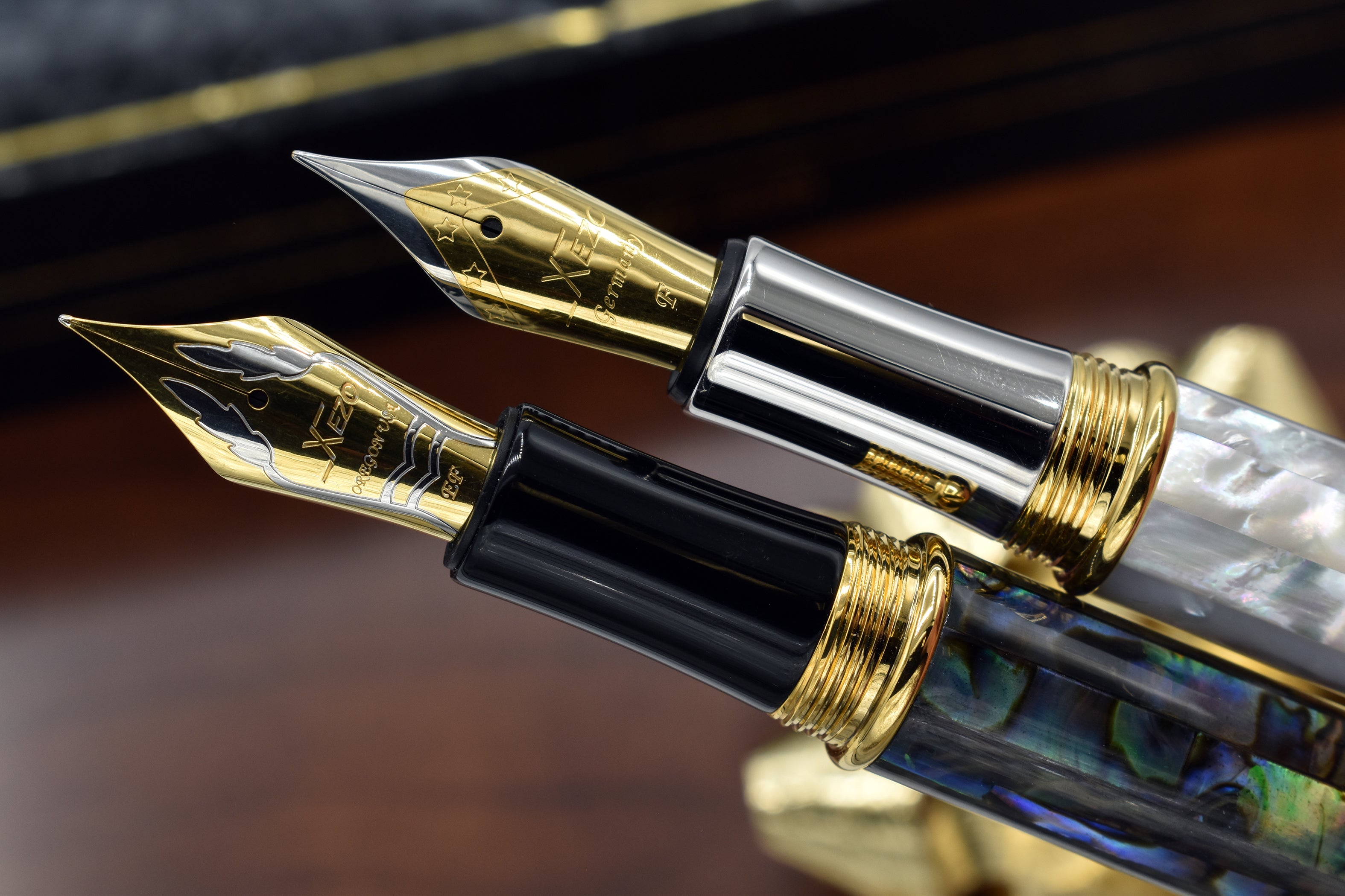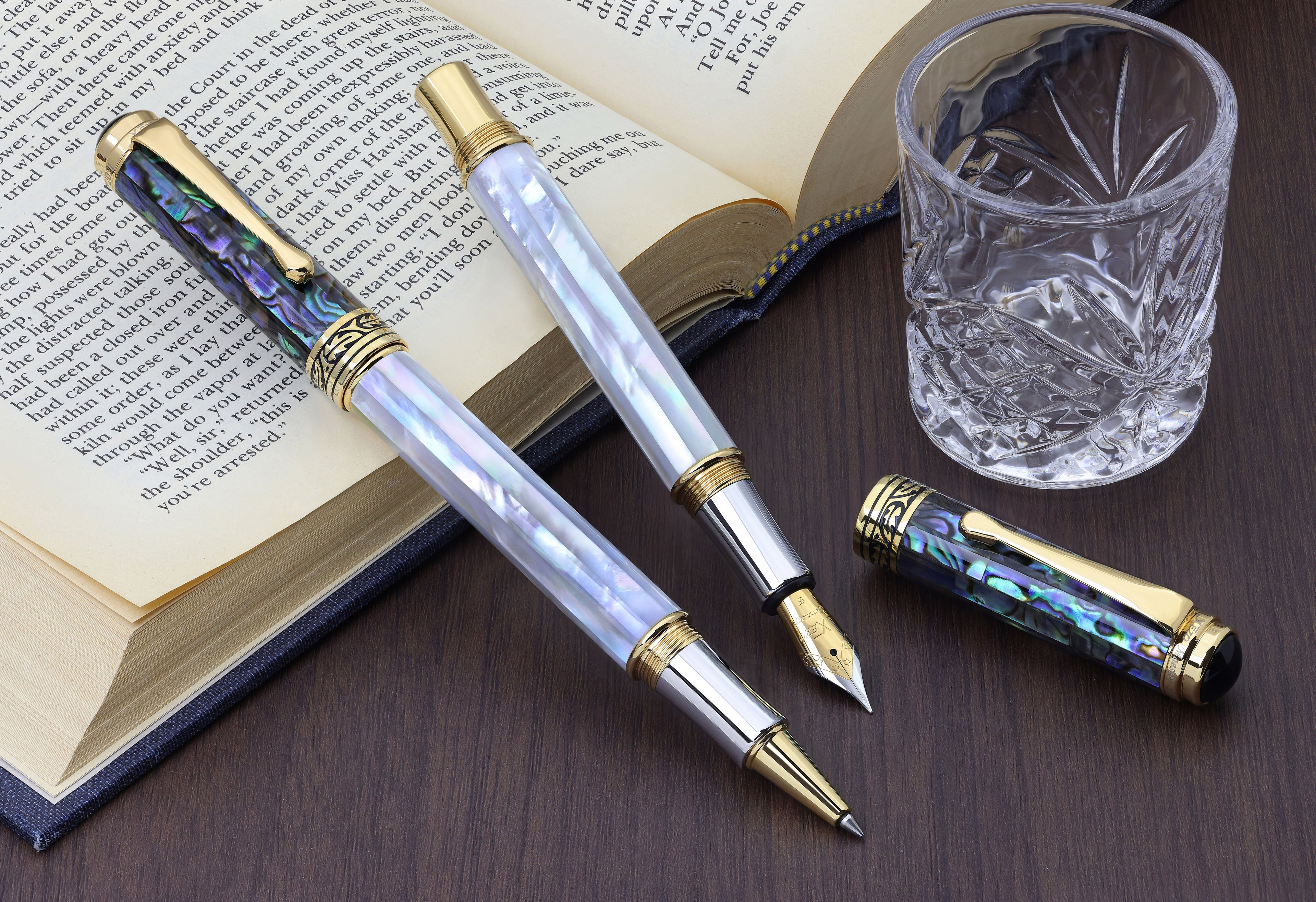 Xezo Maestro® 18K Gold Plated Fountain Pen (Medium Nib) - Oceanic White Mother of Pearl