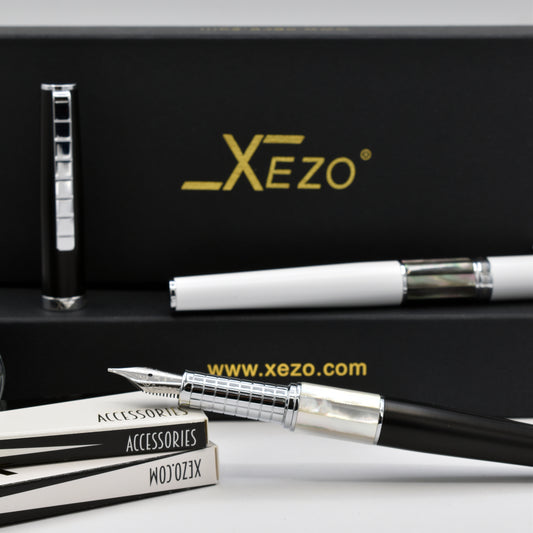 Xezo Speedmaster® Black Brass Fountain Pen (Extra Fine Nib) - With White Mother of Pearl