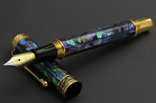 Xezo Maestro® Paua Abalone Sea Shell Fountain Pen (Medium Nib) - 18K Gold Plated