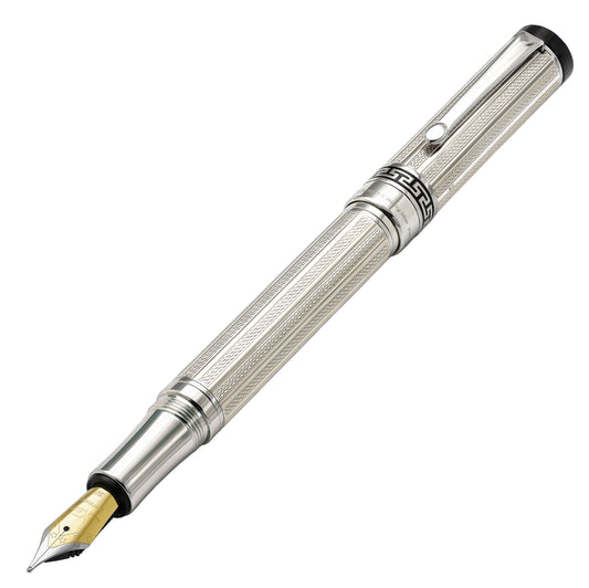 Tribune 925 Sterling Silver Guilloche Engraved Fountain Pen (Medium Nib)