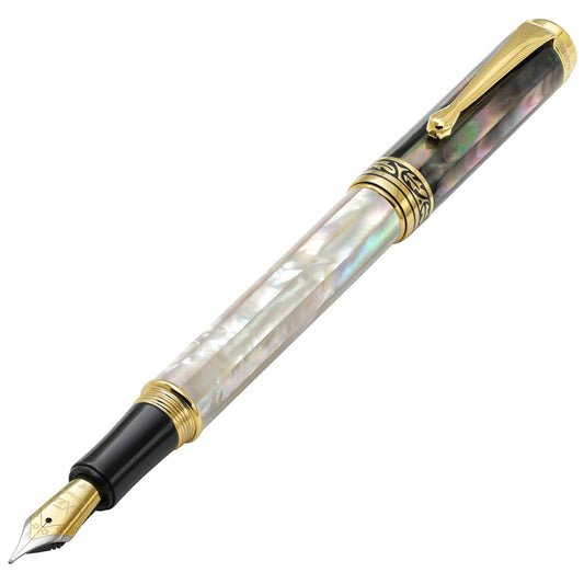 Xezo Maestro® White & Black Mother of Pearl Fountain Pen (Fine Nib) - 18K Gold Plated