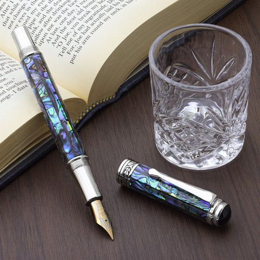Xezo Maestro® Paua Abalone Sea Shell Fountain Pen (Medium-Fine 0.45 mm Nib) - Platinum Plated