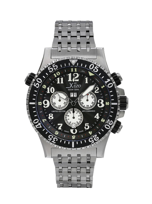 Xezo Air Commando 300-Meter Water Resistant Swiss-Made Chronograph Men's Watch With Second Time Zone (Air Commando D45-GS)