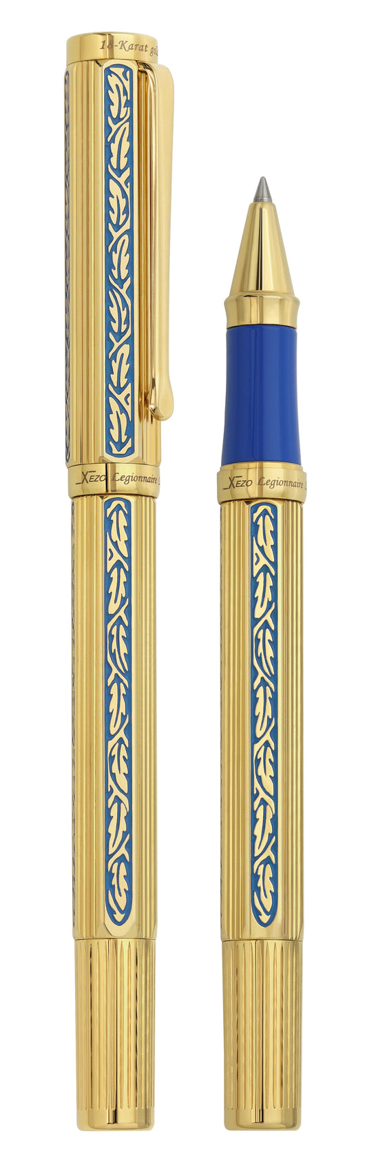 Legionnaire Diamond-Cut 18K Gold-Layered Rollerball Pen – Finely Hand-Etched Egyptian Blue Lacquer, 0.6 mm Fine Point