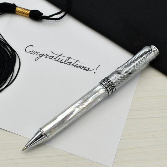 Xezo Maestro® 925 Sterling Silver Ballpoint Pen - Oceanic White Mother of Pearl Cap