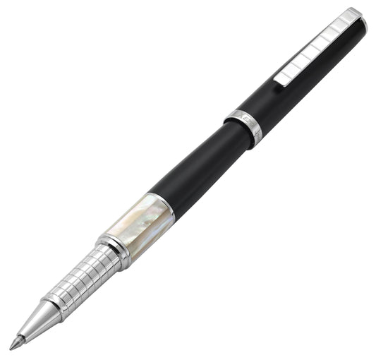 Xezo Speedmaster® Black Brass Rollerball Pen - With White Mother of Pearl