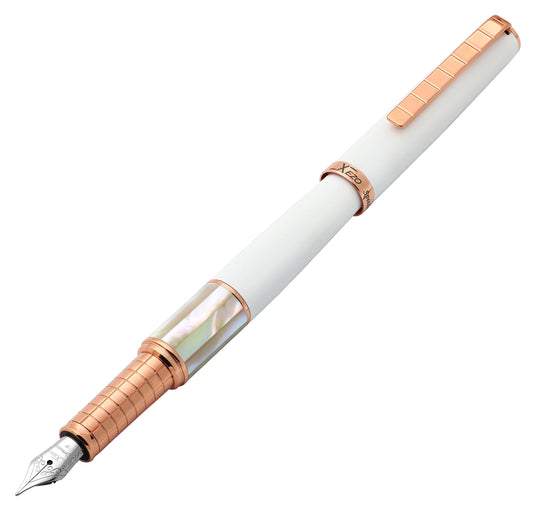 Xezo Speedmaster® White Brass Fountain Pen (Fine Nib) - With White Mother of Pearl & Rose Gold
