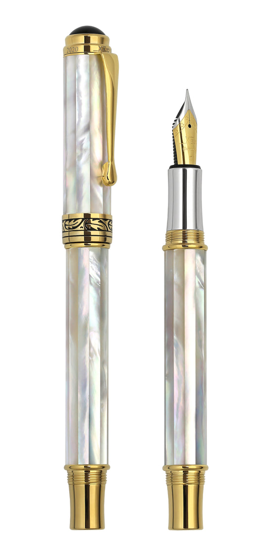 Xezo Maestro® 18K Gold Plated Fountain Pen (Medium Nib) - Oceanic White Mother of Pearl