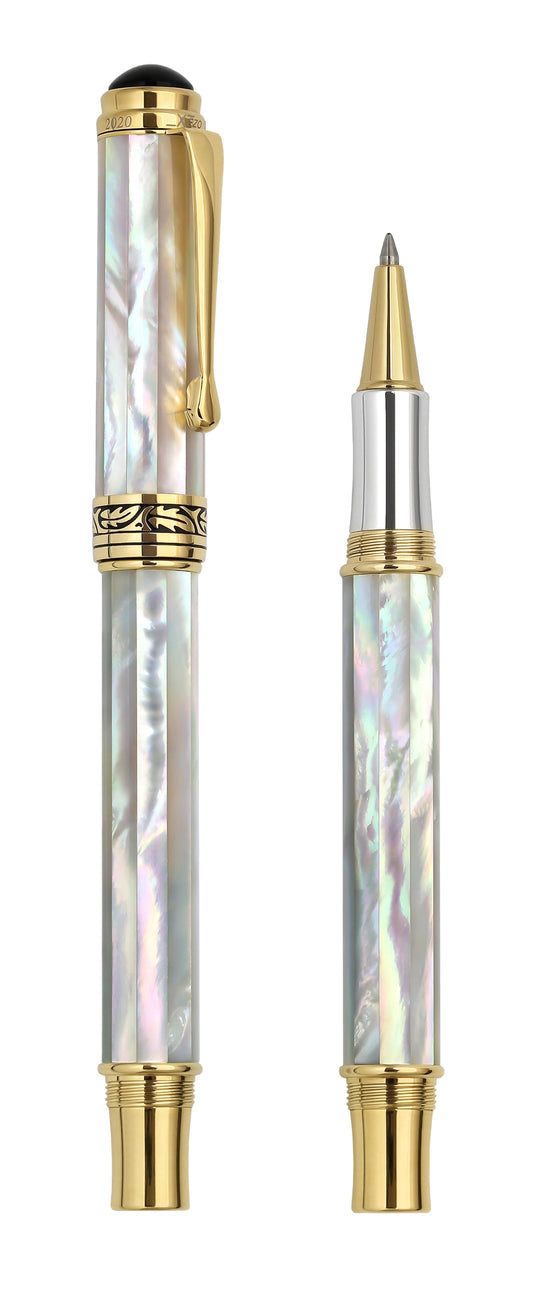 Xezo Maestro® Jubilee Classic of The Ocean Rollerball Pen - Paua Abalone & Oceanic White Mother of Pearl, 18K Gold Plated