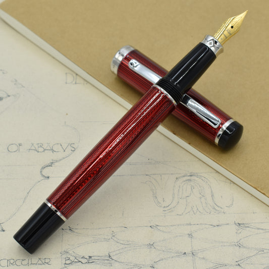 Xezo Incognito™ Diamond-Cut Lacquered Brass Fountain Pen (Medium Nib) - Burgundy Red