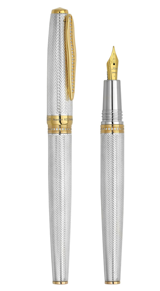 Xezo Maestro® 925 Sterling Silver Fountain Pen (Medium Nib) - Swarovski Crystal Accents