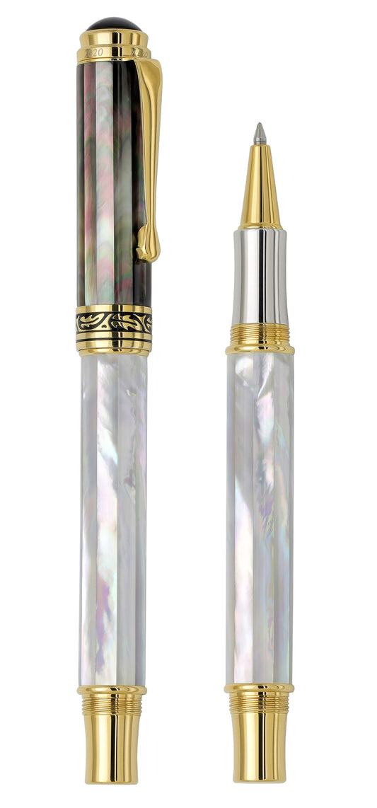 Xezo Maestro® White & Black Mother of Pearl Rollerball Pen - 18K Gold Plated