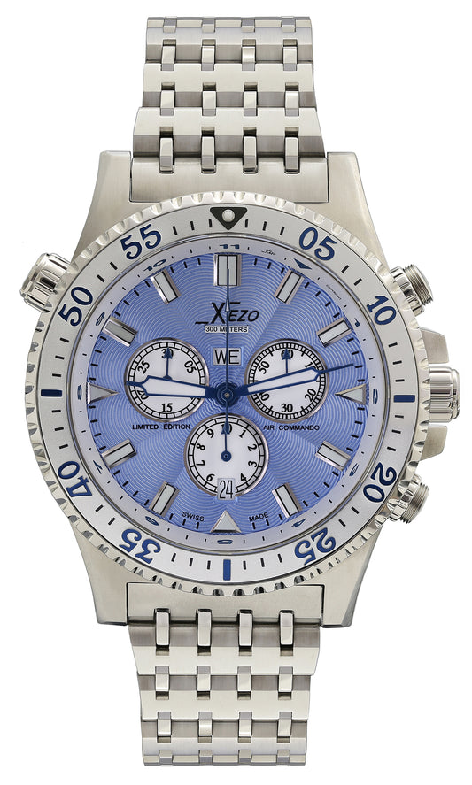Xezo Air Commando 300-Meter Water Resistant Swiss-Made Chronograph Men's Watch With Second Time Zone (Air Commando D45-SB)